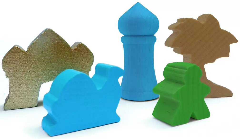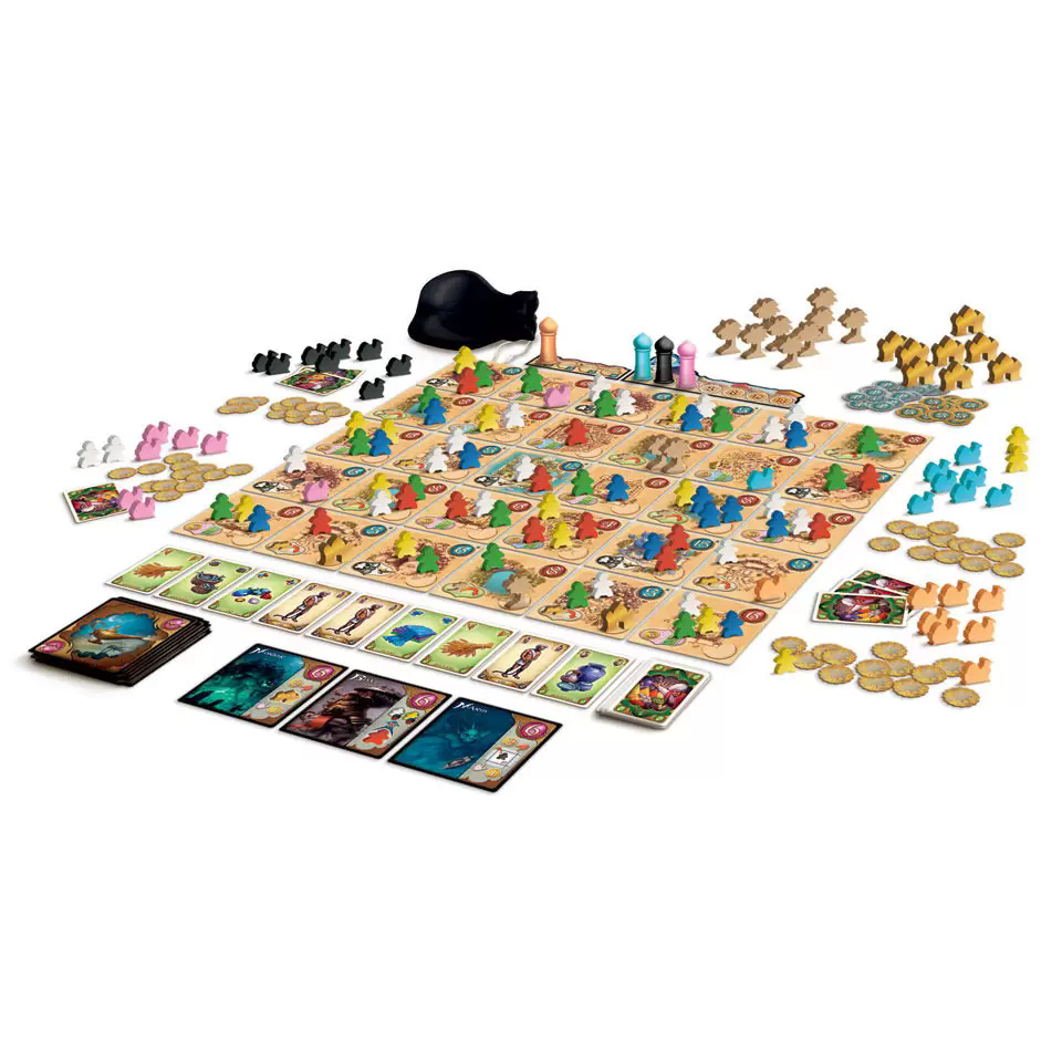 Описание Пять племён. Джины Накаллы Уже четыре дня вы брели под раскалённым солнцем. Во рту пересохло, голова гудела, словно тысяча пчёл одномоментно взвилась внутри вас, а надежда отыскать заветную цель вашего путешествия иссякала, словно песок, уходящий сквозь пальцы. Но что это? Перед вами будто из-под земли вырос город. Нет, даже не город, а целое государство — легендарное место, которое вы искали, рискуя жизнью, — султанат Накала. Вот величественные святилища — обитель мудрых старейшин. Легенды гласят, что они обладают тайными знаниями и могут призывать джиннов — внеземных существ, способных сотрясать землю и созидать золото, строить дворцы и воскрешать мёртвых. Вот пёстрый, словно попугай, рынок, где снуют туда-сюда шустрые и угодливые купцы, продающие папирус, шёлк и специи. Вот вереницы поселений, где работяги-строители трудятся над возведением дворцов. Издали вы разглядели визиря, внимательно следящего за исполнением приказа султана. Не заметили вы одного: человека в красном плаще, наблюдавшего за вами. Несмотря на яркие одежды, увидеть его практически невозможно: в отличие от вас он стоит спиной к солнцу, а кричащая пестрота рынков надёжно скрывает его даже от самого цепкого взгляда. Сейчас вам кажется, что скоро султанат будет подчиняться лишь вашим желаниям. Осталось проверить, не зря ли вы проделали весь этот путь… или есть тот, кто помешает вам переманить все пять племён на свою сторону? В настольной игре «Пять племён» от 2 до 4 участников будут бороться за влияние в султанате Накала. Для увеличения своего авторитета в султанате игроки будут занимать стратегически важные регионы, отмечая свои владения великолепными деревянными фигурками верблюдов, и управлять пятью племенами: выкупать разные товары, подчинять себе визирей, нанимать коварных ассасинов, чтобы насолить врагам или захватить нужные земли, зарабатывать при помощи строителей и использовать мудрость старейшин для призвания древних джиннов. «Пять племён» принято называть «поинт-салатом» (point salad): в этой игре очень много способов набирать победные очки. Каждое племя может сослужить вам хорошую службу, а умелые манипуляции с фигурками и картами в сочетании со свойствами племён и локаций помогут провернуть невероятные комбинации на поле! В начале партии вы будете выкладывать уникальное игровое поле: 6 на 5 жетонов регионов, выкладывающихся в султанат. Одни локации позволяют взаимодействовать с рынком, другие — призвать джинна, третьи — возводить дворцы и выращивать пальмы. Но автору было мало вариативной подготовки поля: каждую партию вы увидите новый султанат, в котором племена (фигурки разных цветов) будут рассредоточены, как им вздумалось на этот раз. Иногда вам нестерпимо захочется ходить первым, чтобы сразу занять привлекательную по очкам территорию, а порой выгоднее отсидеться и не рисковать платой за ход. Основная механика передвижения жителей в «Пяти племенах» может быть знакома вам по очень старой игре под названием «Манкала» (или «Калах»): каждый ход вы собираете в руку жителей с одного жетона региона султаната и по одному размещаете их на соседних жетонах. Последнего жителя вы заберёте себе вместе с жителями того же цвета с последнего жетона и сможете выполнить действие соответствующее этому племени. Каждое из племён подчинено логике с